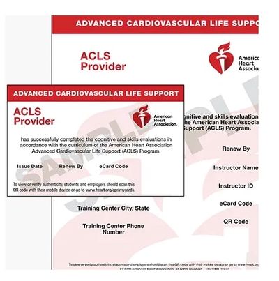 ACLS is designed for healthcare professionals who either direct or participate in the management of cardiac arrest, stroke, or other cardiopulmonary emergencies. This includes personnel in emergency response, emergency medicine, critical care/intensive care, and surgery such as Physicians, Nurses, and Paramedics, as well as others who need an ACLS course completion card for a job or other requirement. Upon successful completion of the course, students receive a course completion card, valid for two years. Please contact your employer to ensure that you are selecting the correct course.